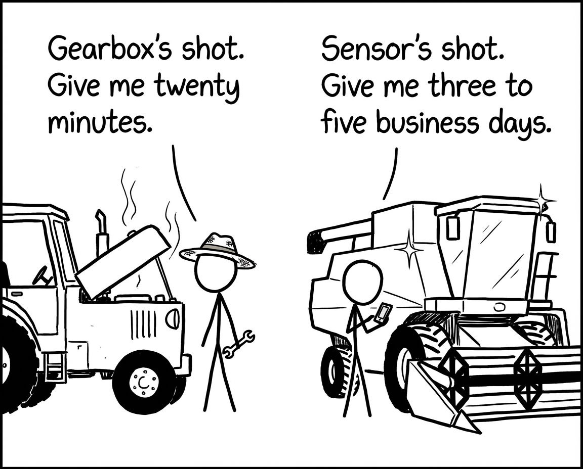 Standardized repair interfaces. Just as USB-C created a standard port for charging, certain tractor components (sensors, connectors, diagnostic ports) could follow common standards that allow independent repair shops to service equipment without reverse-engineering proprietary systems.