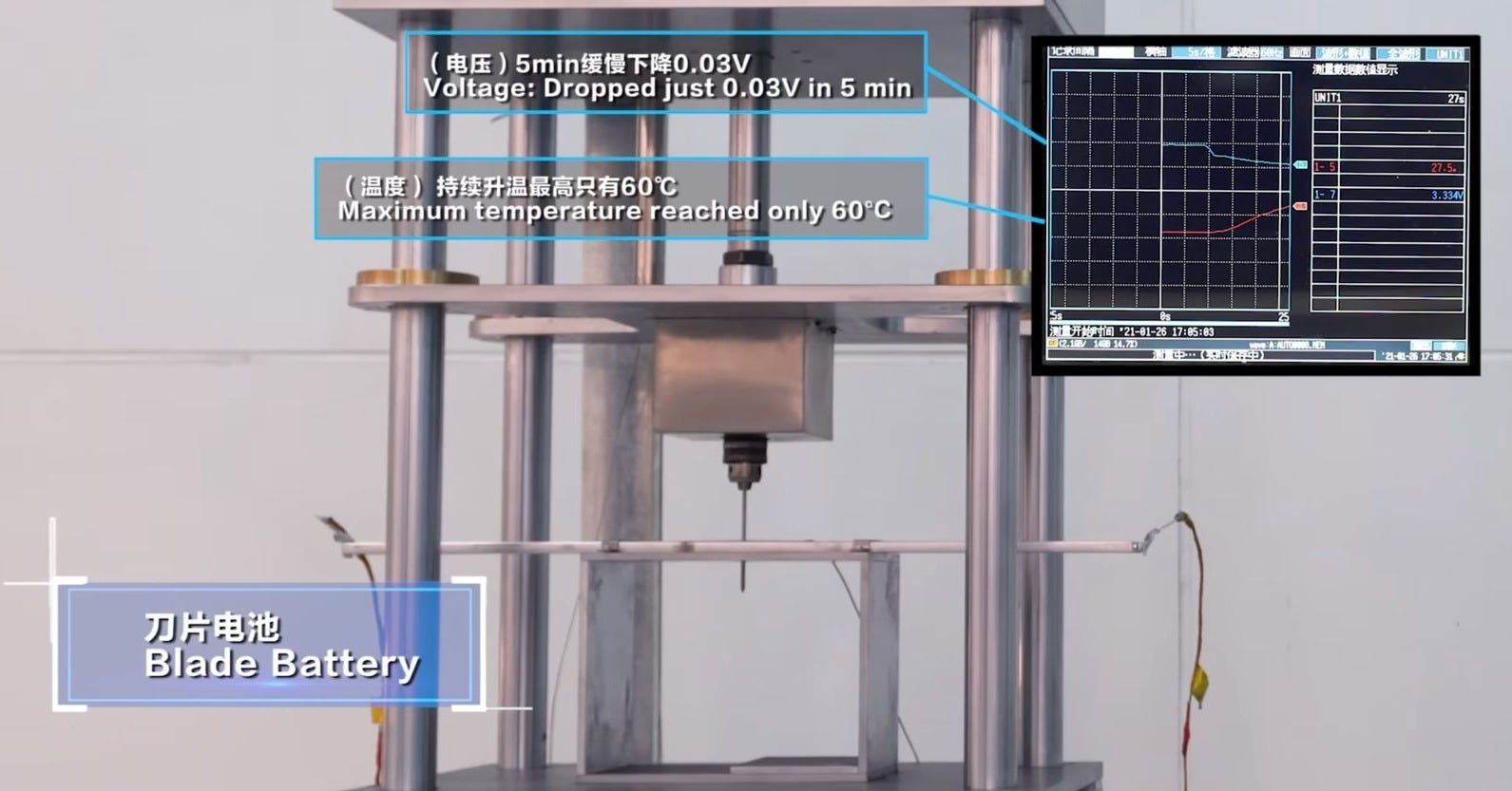 The nail is six inches long. Sharpened to a surgical point. Mounted on a hydraulic press behind plate glass. The press drops slowly enough that you can count your own heartbeat between the moment it touches the battery cell and the moment it punctures the casing.